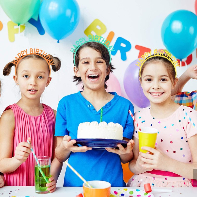 - What Will You Get--6Pcs Cute Happy Birthday Headbands includes 6 bright colors, each color is vibrant and eyes-catching, great party favors to share happiness with friends or family on important days.