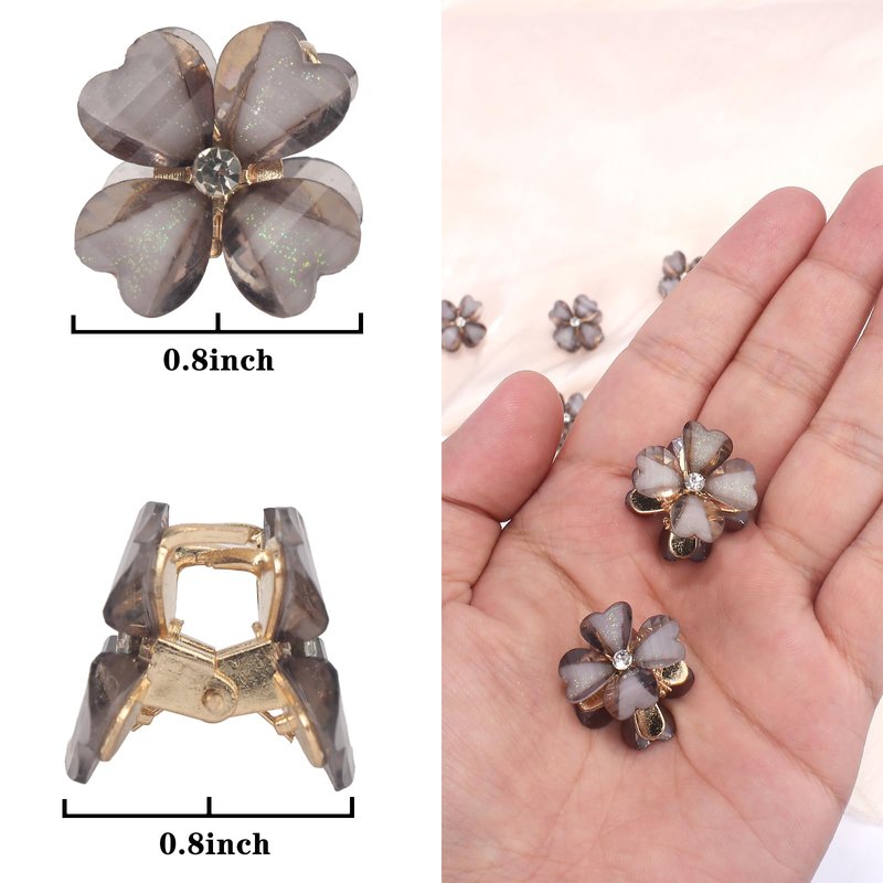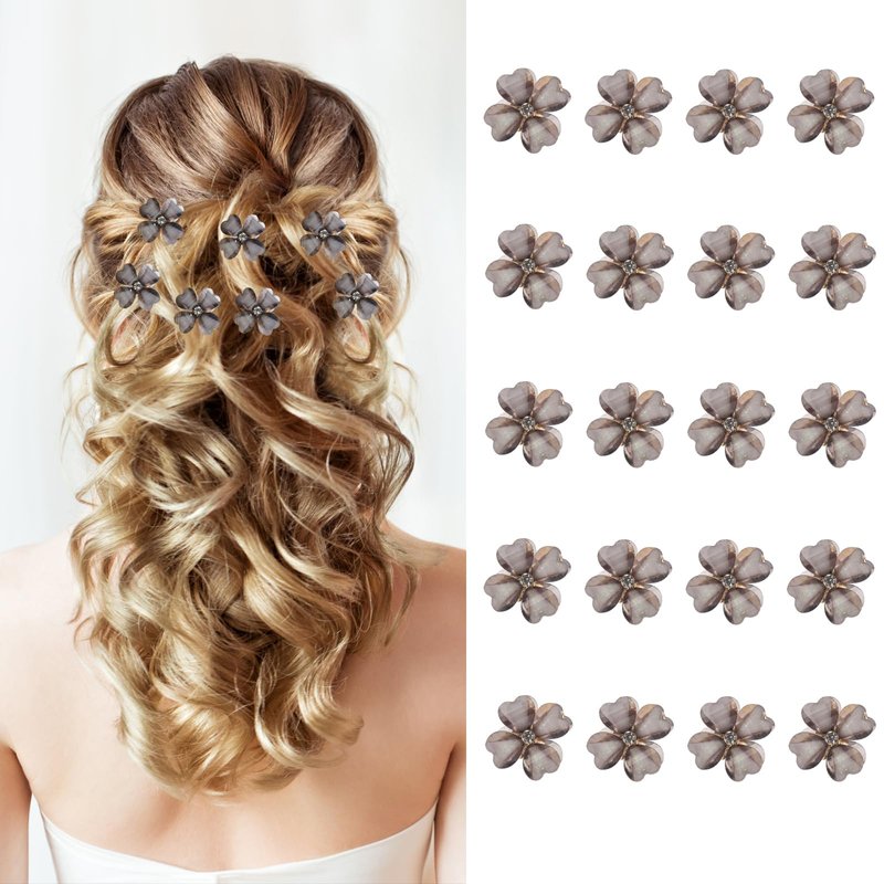 Canitor Mini Flower Hair Clips Rhinestone 20 Pcs Decorative Hair Accessories for Women Girls Cute Small Bangs Clips Hair Jewelry For Wedding Bridal (gray)