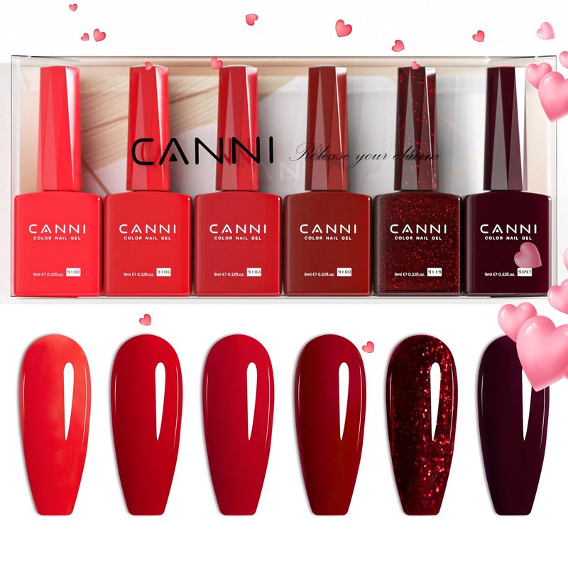- ❤HEMA FREE FORMULA RED GEL NAIL POLISH SET: 6Pcs x 9ml/0.32oz CANNI gel nail polish is specially formulated and does not contain HEMA, ensuring a safer and healthier nail care experience.