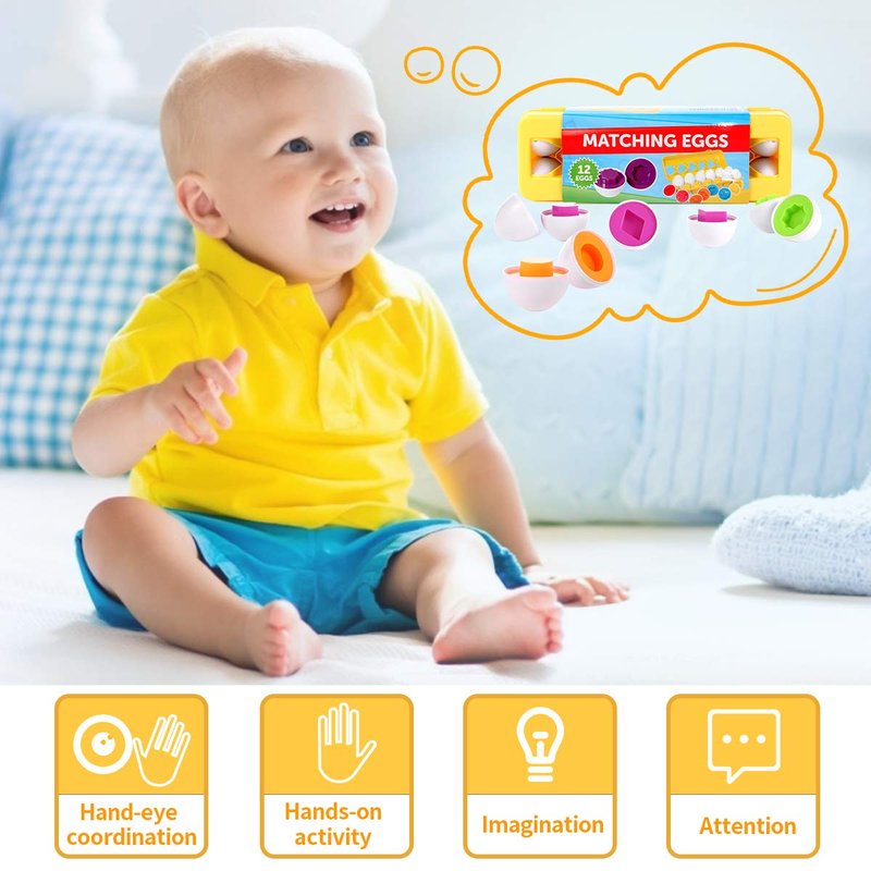 CANSHOW Matching Egg Set - Toddler Toys - Toddler Games-Educational Color & Shapes & Fine Motor Skills Learning Toy Toddler boy Girl Toys Easter Eggs Gift Ages 3 Years Old & up (12 Eggs)