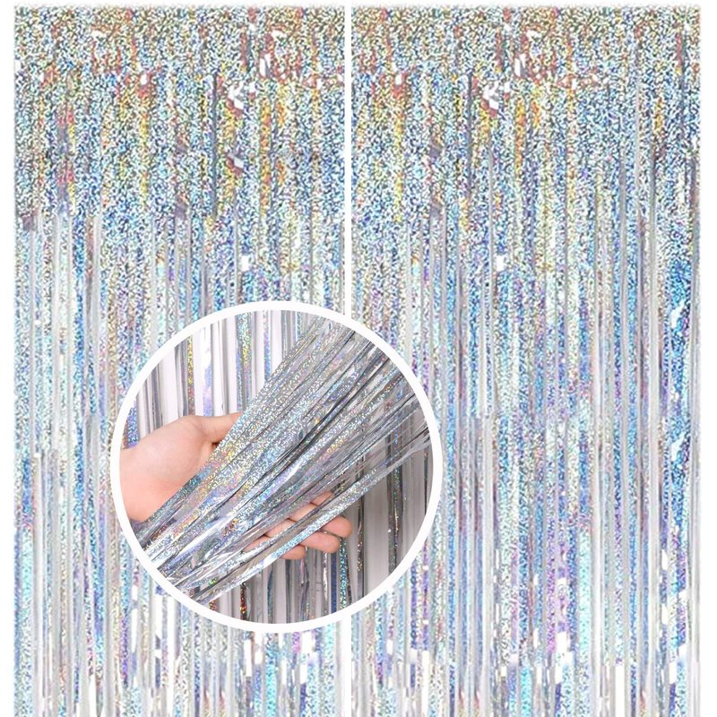 - EASY TO USE - The foil curtain party decoration come with double-sided adhesive tape, easy to use, pasting on the top of wall, door or window.Perfect photo backdrop,You can combine with other Fringe Curtains of different colors to achieve the color combination that you desired!
