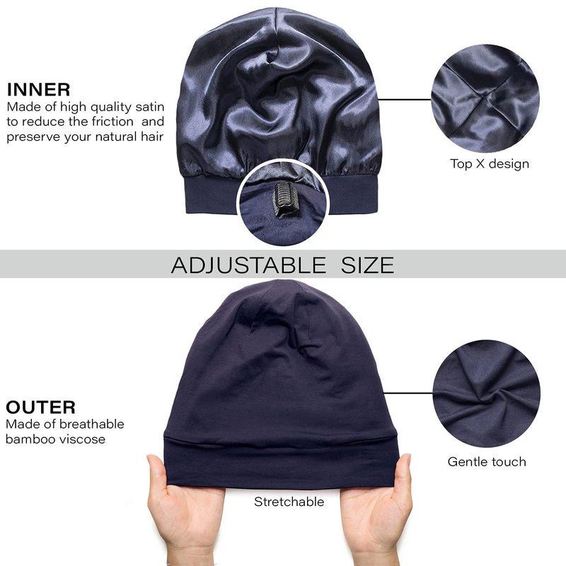 - Customizable Comfort: Our satin and silk sleep caps feature a smooth adjustable band. With this customizable feature, you can sleep with ease knowing your hair is protected and secure, without sacrificing comfort.