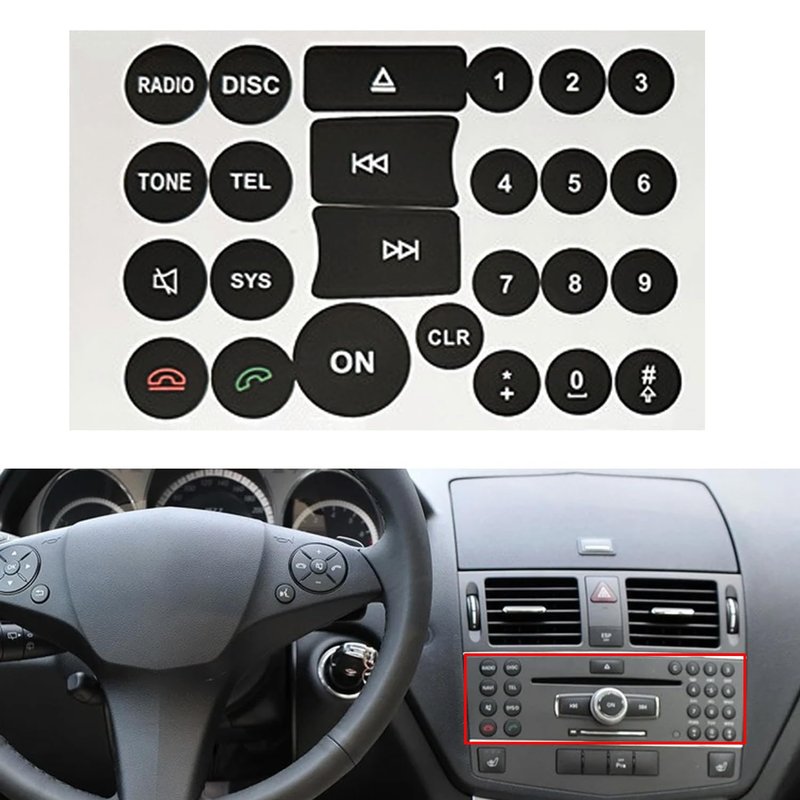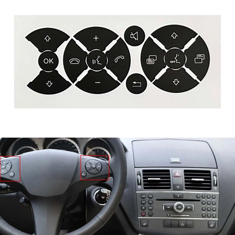Car Button Decals Interior Stickers for Mercedes Benz W204 C250 C350 E-Class 2008-2014 AC Radio Steering Wheel Air Conditioner Number Door Repair Sticker Kit