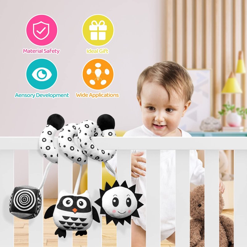 Car Seat Toys,Baby Activity Hanging Toys,Baby Pram Crib Spiral Plush Toys,Baby Rattles Spiral Stroller Car Seat Toy,Newborn Plush Sensory Toys for Strollers, Baby Bed(Owl)