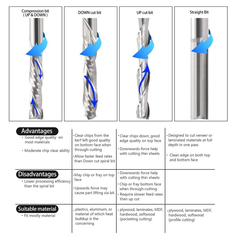 - Fast Chip-Removal volume and Speed, Non-stick With bits, Suitable For Composite multilayer board, hard wood, polywood, acrylic
