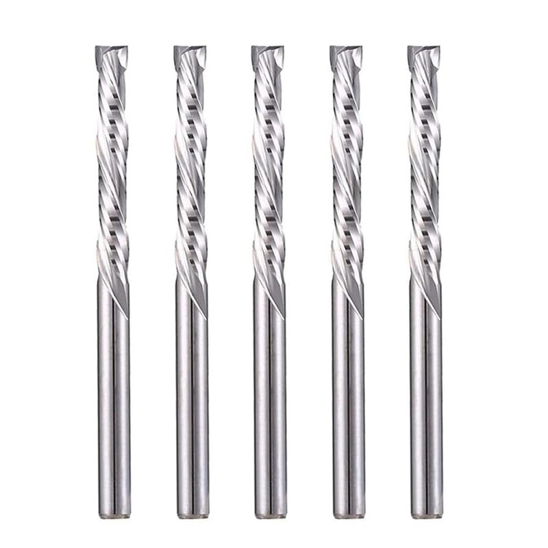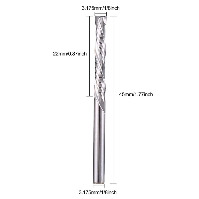 - Up Down Cut,1/8" Shank X 1/8"Cutting Dia, 22mm Flute Length with 2 Spiral Flutes, Total length 45 mm, 5 pieces per pack