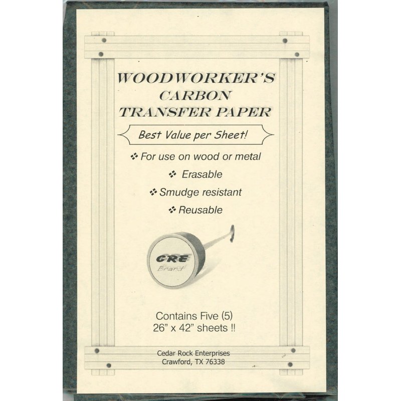 Use CRE Brand() transfer paper to easily trace and transfer your woodworking patterns to wood. Each package contains 5 large, 26" x 42" sheets – that’s over 37 square feet of paper for your use! The erasable lines won't bleed thru paint. Clean, smudge resistant formula.
