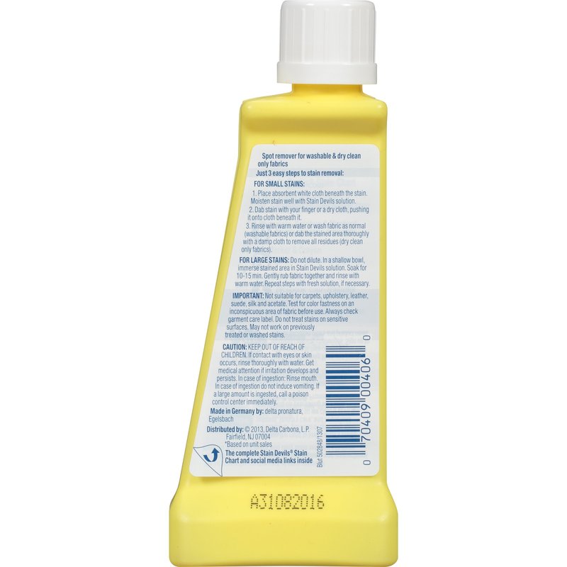 - SAFE & EFFECTIVE: Dermatologically tested to be safe for your hands and environmentally friendly for disposal. Stain Devils #4 is safe and effective on washable and water-safe fabrics, including cotton, wool, nylon, rayon, polyester, acrylics, and blends. (Excluding silk, acetate, carpeting, or upholstery.)