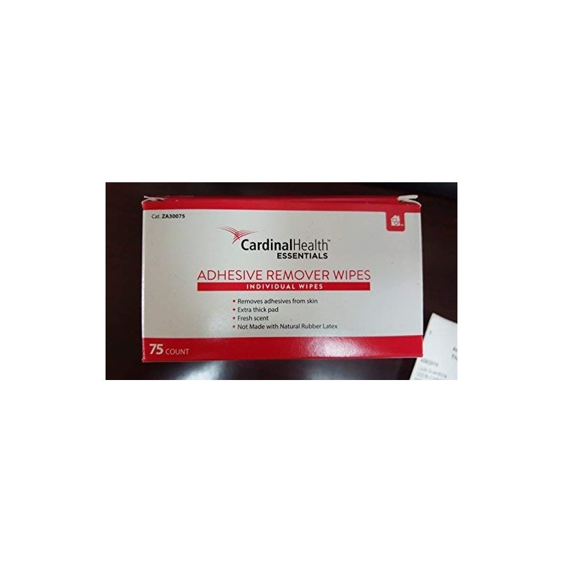 Cardinal Health Essentials Adhesive Remover Wipes, 1-1/4" x 3" . Adhesive remover wipes. Dissolve and remove adhesive residue from skin and appliances. Fresh scent. For external use only. Latex-free and non-irritating.