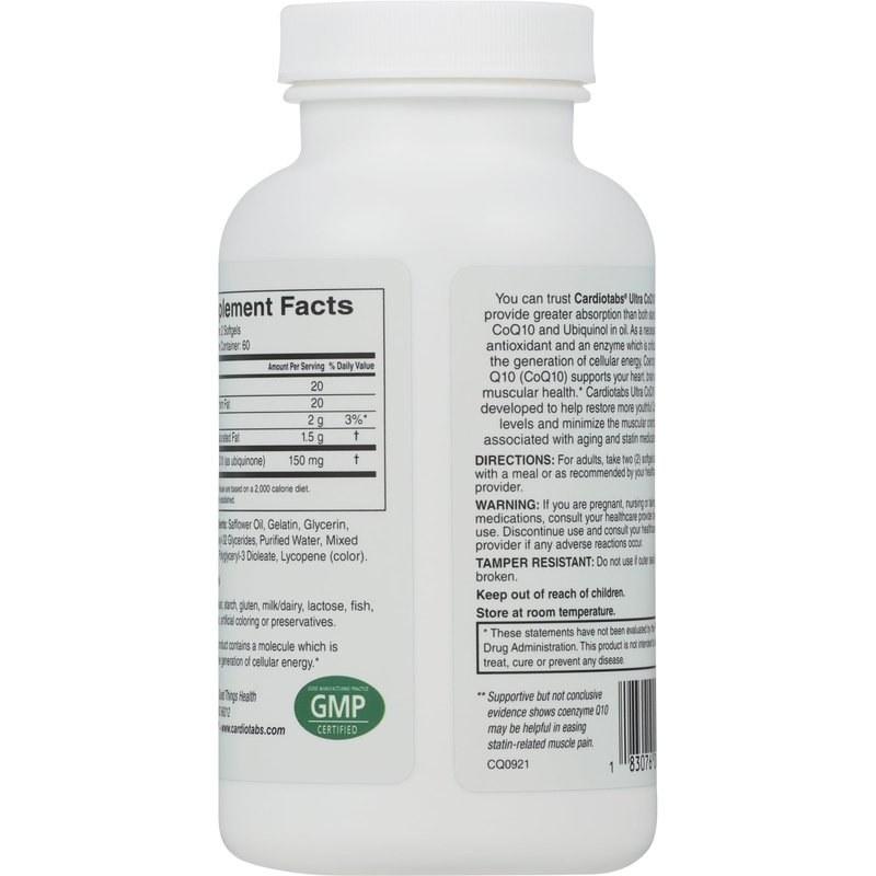 CardioTabs Ultra CoQ10 Coenzyme Supplement for Cardio Health, 150 mg of CoQ10 - Ubiquinone - Per 2 Softgels w/Safflower Oil & Tocopherols, 6X Better Absorption for Brain & Muscle Health, 120 Softgels