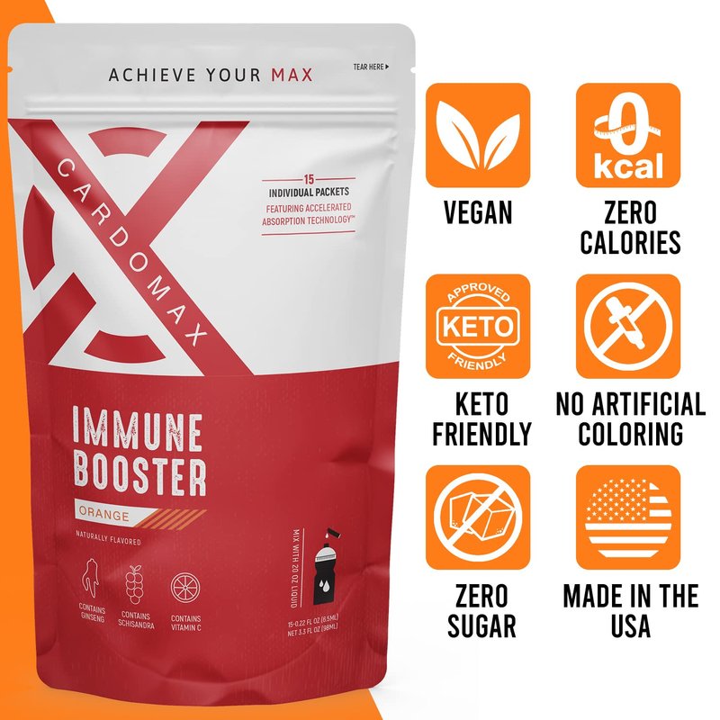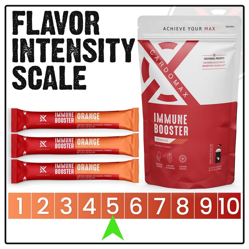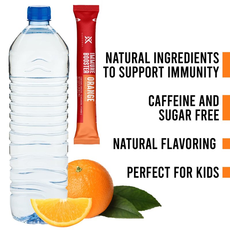- PREMIUM IMMUNE SUPPORT - Orange flavored Immune Booster from CardoMax is packed with natural ingredients to support your immunity. Siberian Ginseng is a natural adaptogen that helps fight cold & flu symptoms, Schizandra improves blood flow, and Vitamin C helps boost immunity.