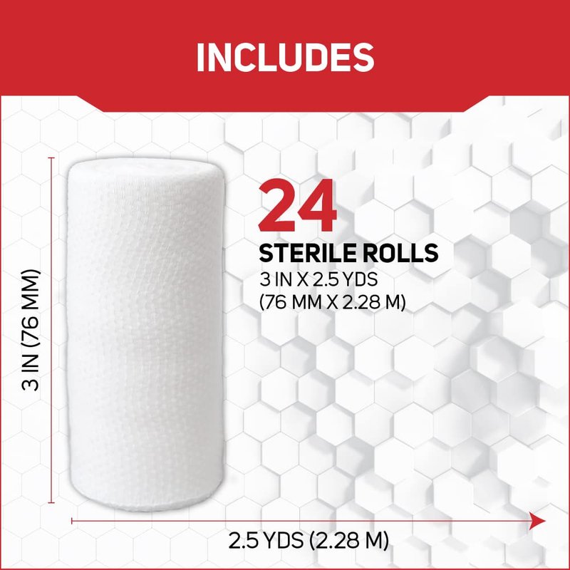 - STRETCHES AND CONFORMS - Designed with soft, stretchable and highly absorbent material that conforms to your skin. It is fully flexible for hard to bandage areas, and can be used for covering wounds, surgery preparation, scrubbing, and wound cleaning. Each package contains 24 sterile rolled gauze pads sized 3 IN x2.5 yds.