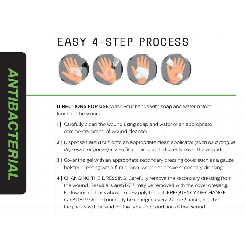 - HEAL QUICKLY – CareSTAT is an essential emergency kit addition to help wounds heal quickly. For optimal results reapply it daily or each time the bandage is changed.