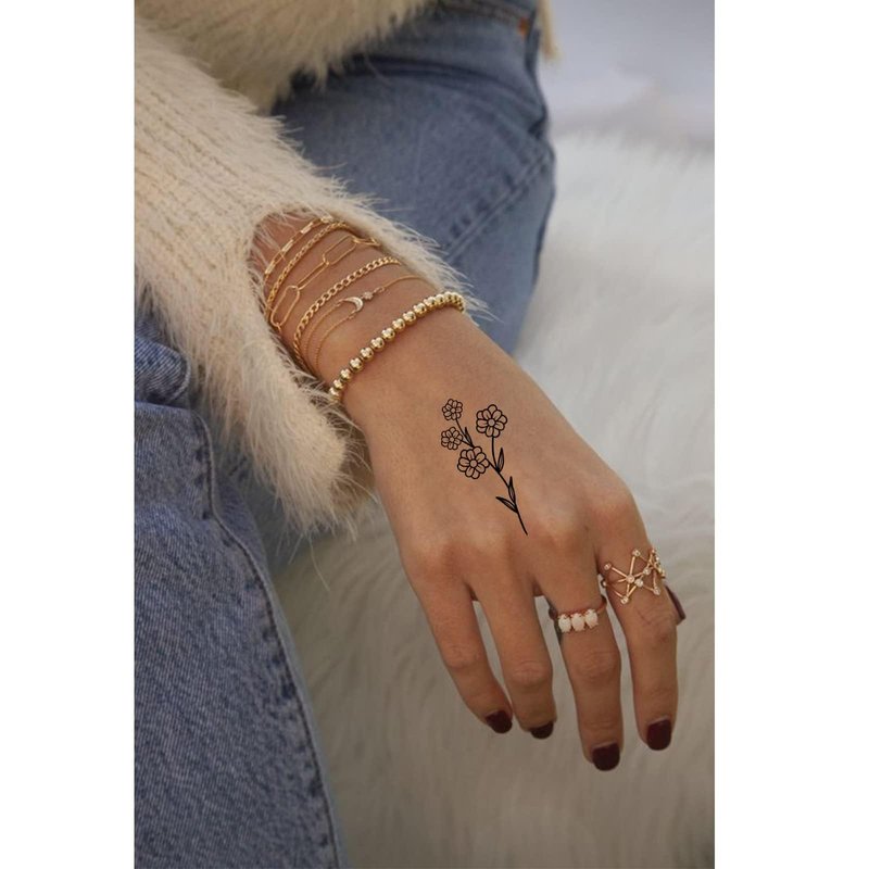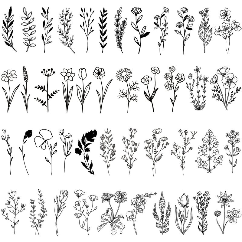 CARGEN Black Flower Branch Temporary Tattoos - 10 Sheets 44 Design Flower Floral Bouquet Plant Tulip Sunflower Lavender Sweet Pea Larkspur Sticker Temporary Tattoo Fake Tattoo for Women Girls Body