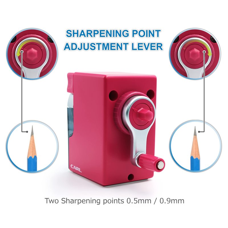 - Sharpening Point Adjustment Lever Two Point Sharpening can be adjusted to a 0 9mm point by rotating the lever clockwise and to a 0 5mm point by rotating the lever counterclockwise