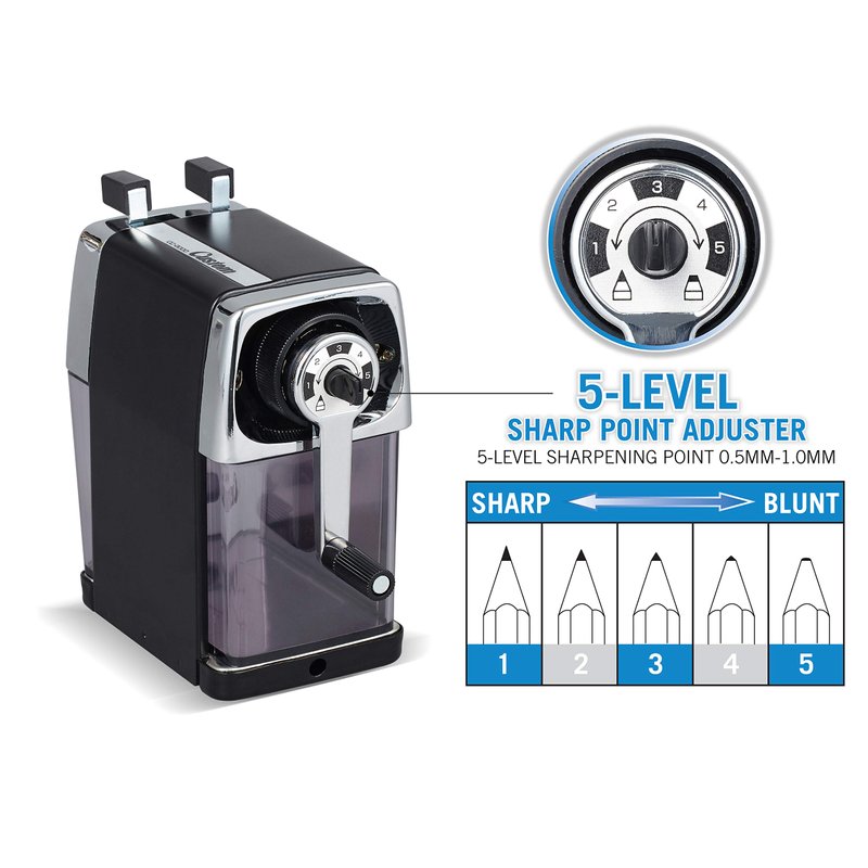 CARL Pencil Sharpener, CC-2000, Black, 5-Point Selector. Manual, Quiet for Office and Home Desks, School Classroom, CUI19018