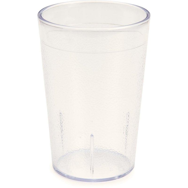 5526-8107 Color: Clear Features: -BPA free. -Tapered sides make tumblers easy to stack and pull apart. -Textured exterior hides wear and tear. -Stacking lugs inside prevent jamming when stored. -Durable san reduces breakage. -Extremely break-resistant polycarbonate extends tumbler life. Country of Manufacture: -United States. Product Type: -Insulated tumbler. Capacity: -8 Fluid Ounces. Dishwasher Safe: -Yes. Service Size: -1. Function: -Casual. Primary Material: -Plastic/Acrylic. Dimensions: Overall Height - Top to Bottom: -3.94". Overall Product Weight: -0.7 lbs. Overall Width - Side to Side: -2.62". Overall Depth - Front to Back: -2.62".