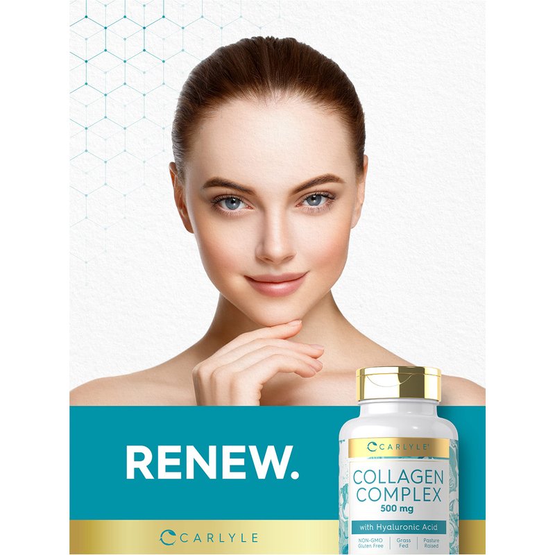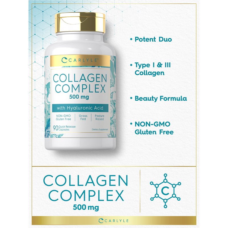 Carlyle Collagen Pills with Hyaluronic Acid 500mg | 90 Capsules | Hydrolyzed Collagen Supplement | Non-GMO, Gluten Free