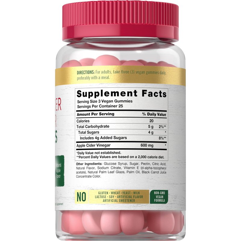 Our vegan formula is Non-GMO and contains no artificial sweetener. Simply add Apple Cider Vinegar to your daily routine today with Carlyle's gummies.
