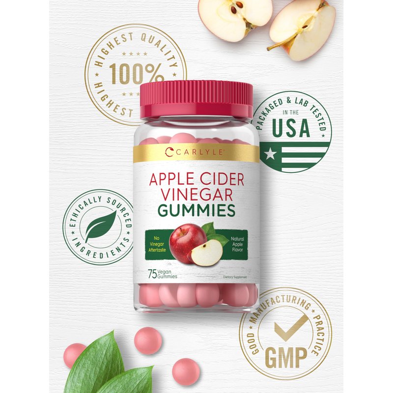 Carlyle Vegan Apple Cider Vinegar Gummies | 75 Count | Apple Flavor | Non-GMO, Gluten Free | ACV Supplement