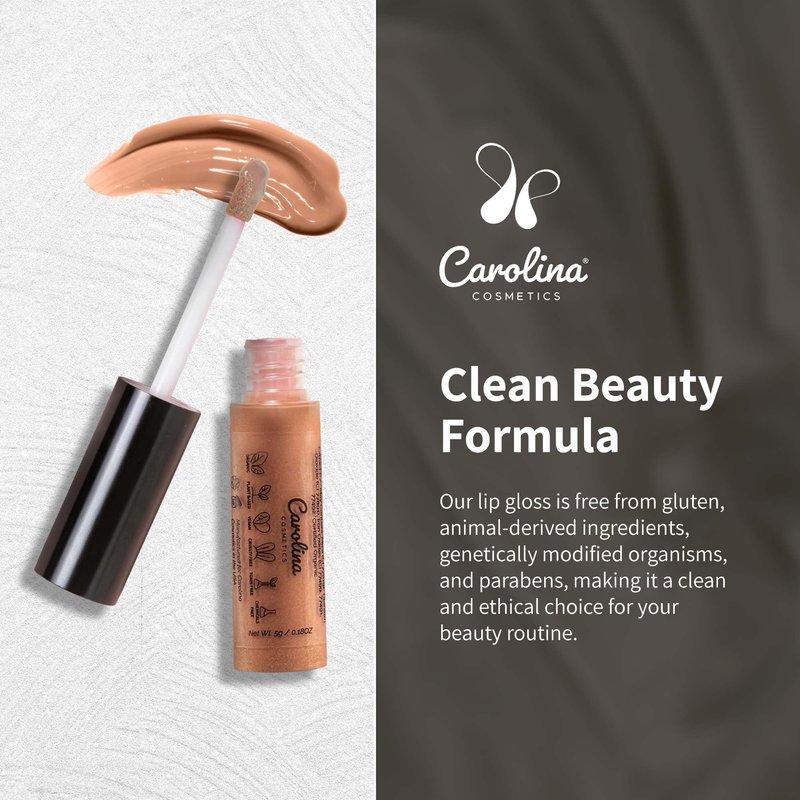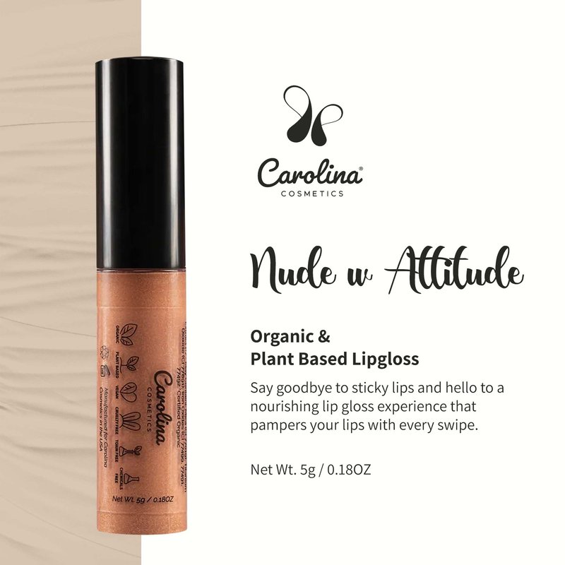 Carolina Cosmetics - Plant-Based Non-Sticky Lip Gloss (Nude with Attitude) - Hydrating & Nourishing - Sunflower Seed Oil, Cacao & Grape Seed Oil - Gluten-Free, Vegan, Non-GMO, Paraben-Free - 5g/0.18oz