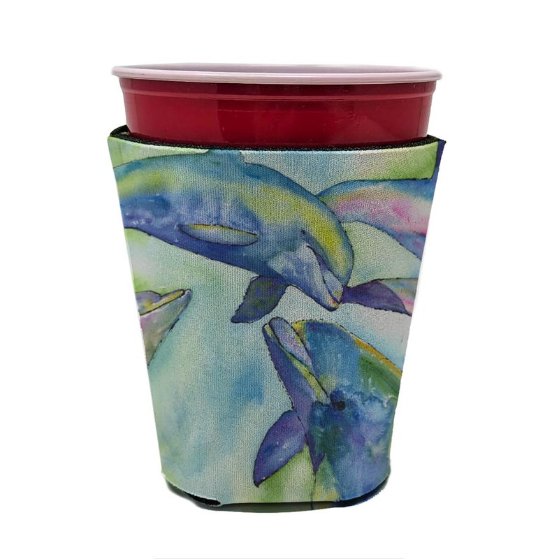 Caroline's Treasures 8548RSC Dolphin Red Cup Hugger Cup Cooler Sleeve Hugger Machine Washable Drink Sleeve Hugger Collapsible Insulator Beverage Insulated Holder