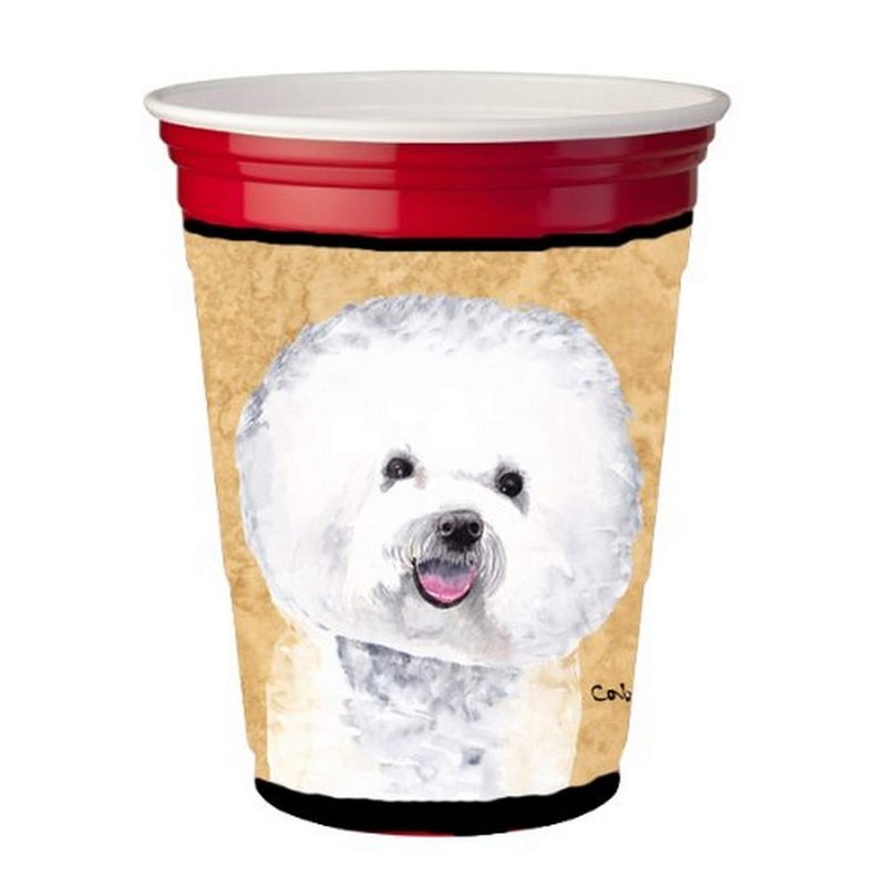 Caroline's Treasures SC9135RSC Bichon Frise Red Cup Hugger Cup Cooler Sleeve Hugger Machine Washable Drink Sleeve Hugger Collapsible Insulator Beverage Insulated Holder