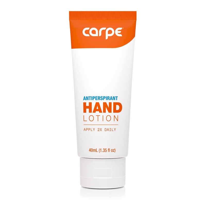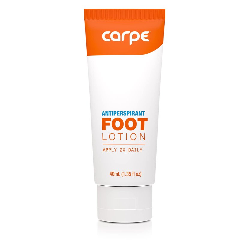 - REDUCE SWEAT AND STANK: With Carpe Antiperspirant Lotion. With just a dime-sized amount, reduce sweaty feet without the downsides of prescription oral treatments or iontophoresis. And with a pea-sized amount, reduce sweat on your hands with safe and effective ingredients. Apply every night and morning for best results, and say goodbye to your sweaty, stinky feet and clammy hands.