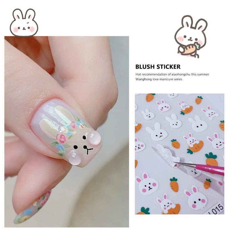 - 【What you will get】: You will get 2 sheets identical self-adhesive Carrot Bunny nail sticker decals, sticker size: 5.11 inch X 3.66 inch. They have separate packaging, so you can easily store them for reuse after using.
