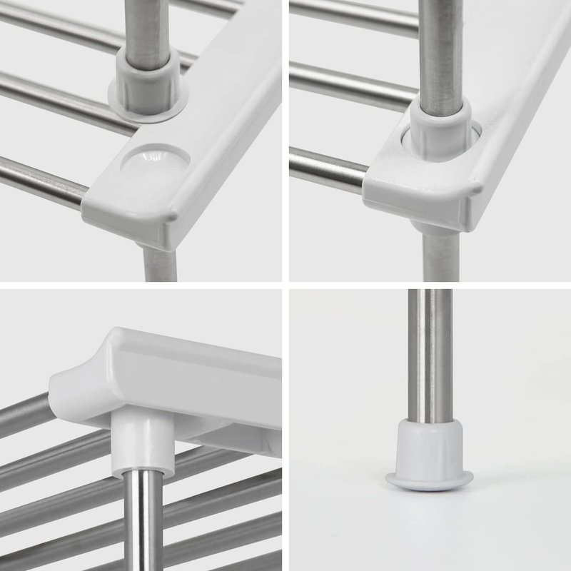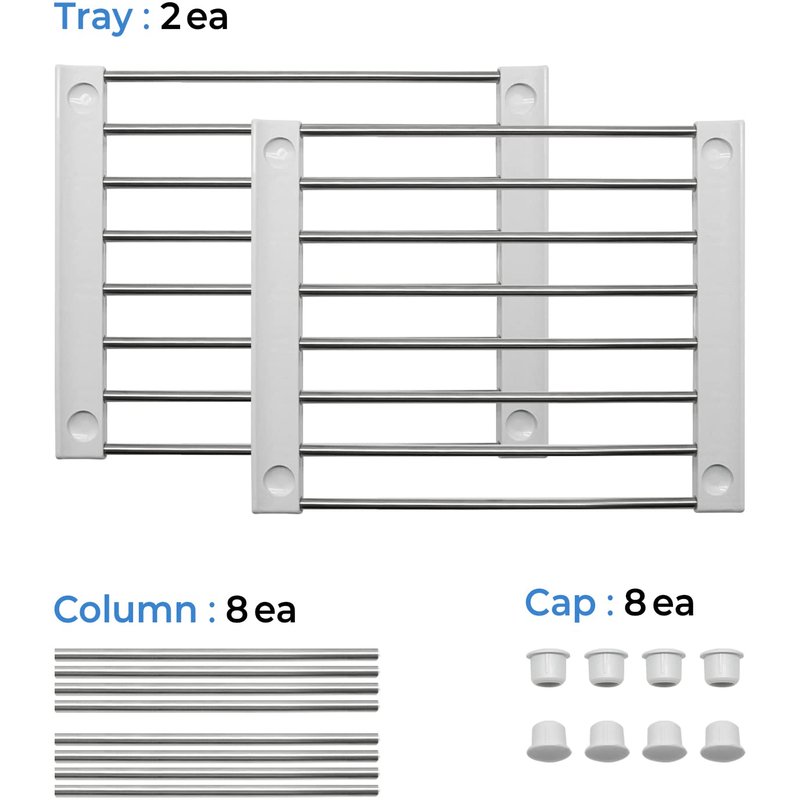 · Color: Silver & White· Material: Stainless steel & Plastic· Small One Size: 9.8 x 7.8 x 5.5" · Large One Size: 15.7 x 7.8 x 6.1"· Product Weight: 2.6 lb (1.2 kg)· Load Capacity of Each Shelf: 22 lb (10 kg)Multiple USE: