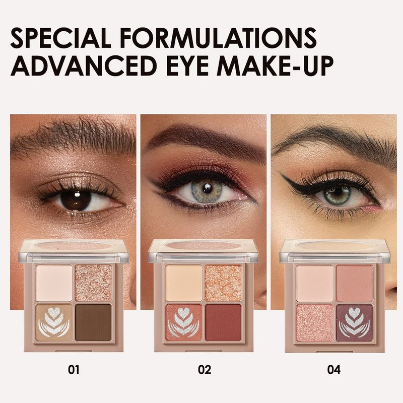 - ☕For Newbie: The eyeshadow color quads are super easy to apply. Beginner-friendly that you are only 4 steps away from creating your perfect eye makeup with our powder eyeshadow palette.
