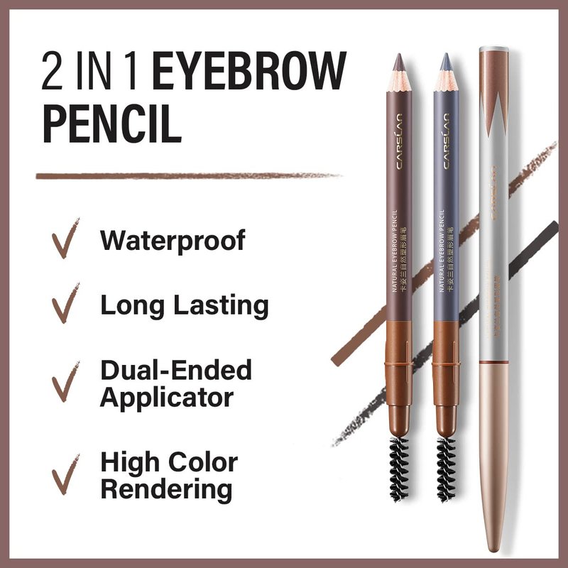 CARSLAN Natural Shaping Eyebrow Pencil, Definer Eyebrow Color, Waterproof, Longlasting, Blending Brush,01 Light Brown & 03 Light Gray (2PCS)