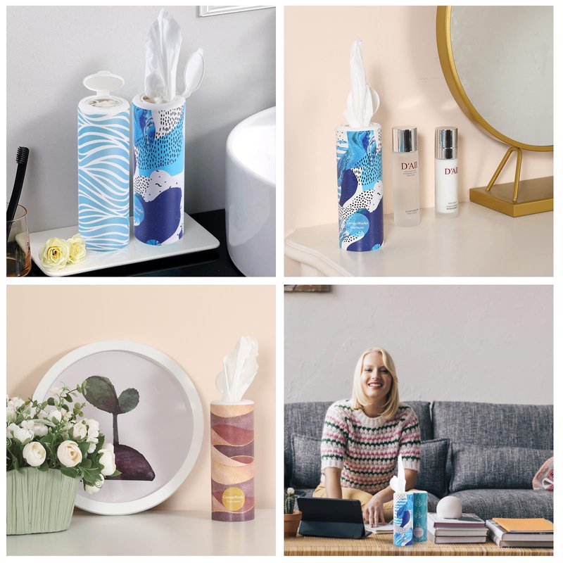 CarsonWorks Car Tissues Cylinder 4 Packs Round Tissue Box Holder Fit for Car Cup Holder, Home Small Tissue Dispenser with Refill Tissues for Car Bathroom Office