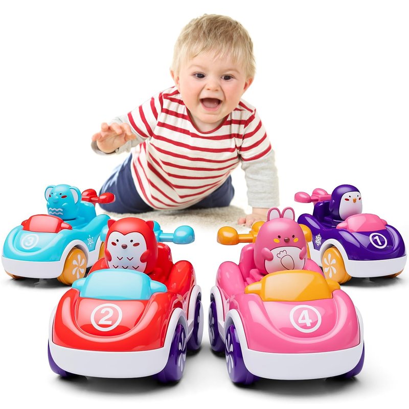 - 【Perfect Gift Toys】 Baby car toys 1-2-3 year old with cute shape and bright colors are perfect first birthdays, Christmas, Xmas, Thanksgiving, Halloween gifts for boys and girls with joy and happiness.