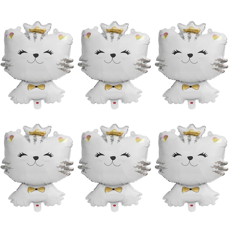 Cartoon Pet Themed Kitten Cat Balloons White Cat Aluminum Balloons Kids Party Supplies Birthday Decoration Baby Showers, 6 Pack 27'' Animal Kitty Cat Helium Mylar Foil Balloons