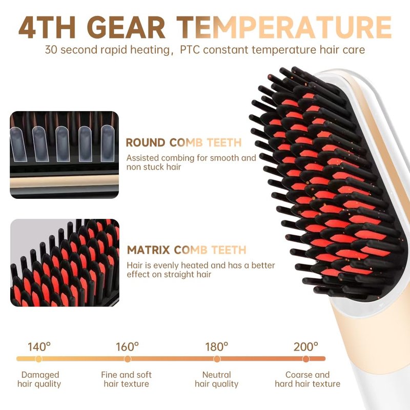 - ✨Ceramic Coating for Hair Protection✨: The comb teeth of the hot comb brush are designed with a ceramic coating, which offers excellent heat conductivity and smoothness. During the straightening process, the ceramic coating reduces friction and damage to your hair, while releasing negative ions to help maintain its hydrated and shiny appearance.320°F/160°C, 356°F/180°C, 392°F/200°C, Show your beauty anytime, anywhere