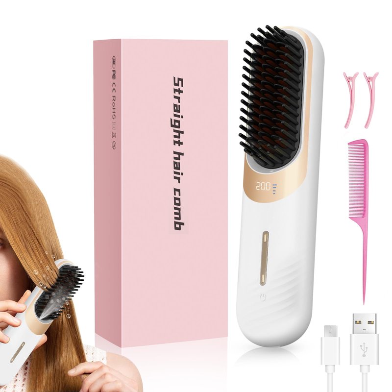 - 💆♀️Safe and Reliable for Hassle-Free Use💆♀️: The ring plus hair straightener comb prioritizes safety, featuring both overheat protection and an automatic shut-off function. When the temperature exceeds the set limit, the overheat protection system automatically activates to prevent damage to your hair. Additionally, the automatic shut-off function ensures the product safely turns off when not in use, minimizing the risk of accidents.Package includes: one hair straightening comb, one TP-C charging cable, one comb, two clips
