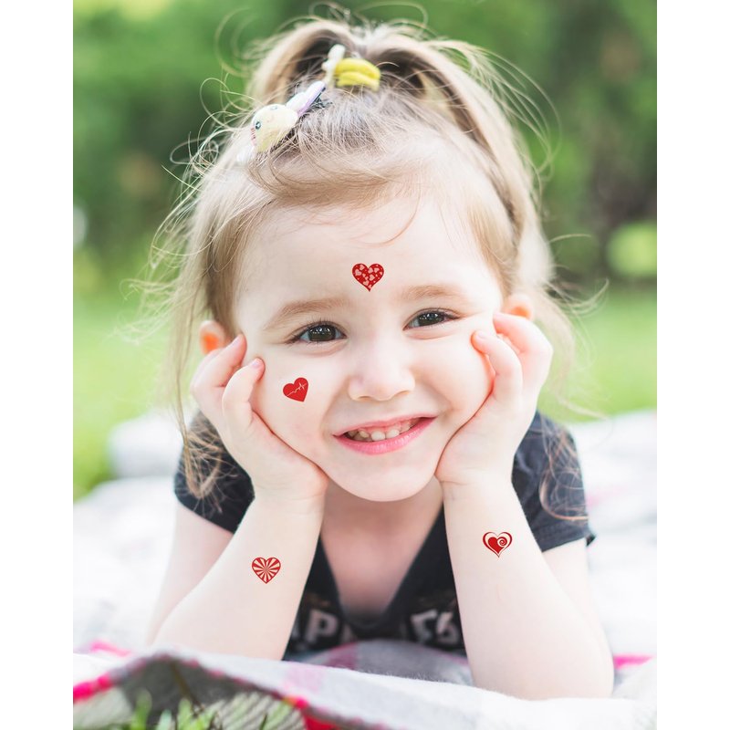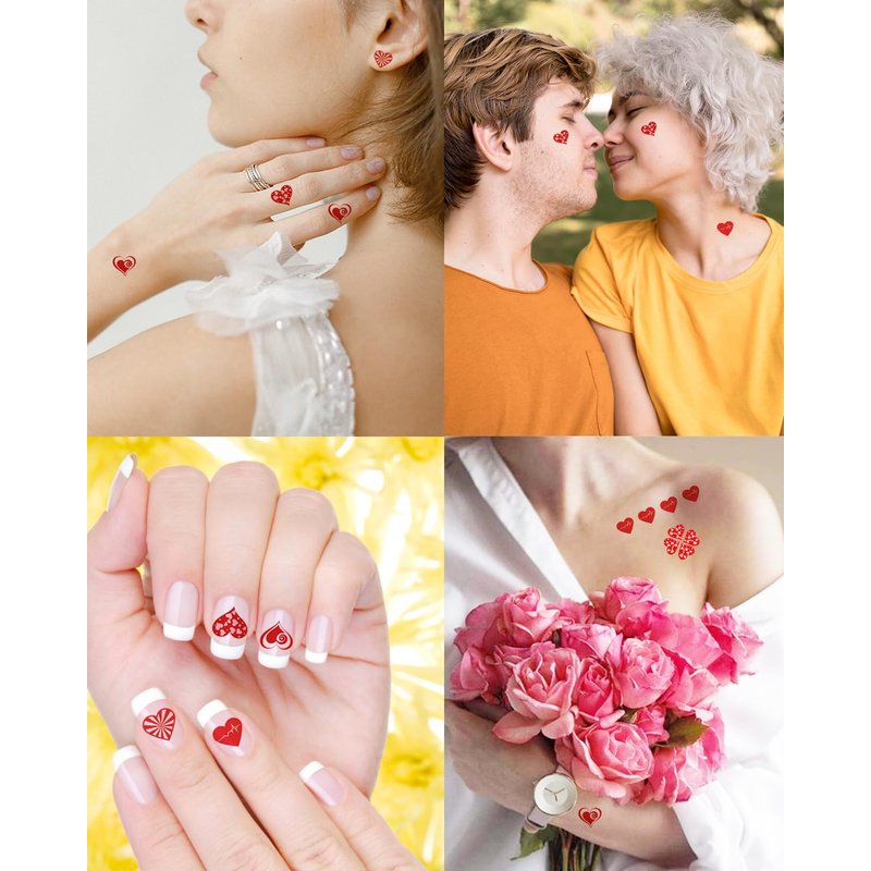 - EXQUISITE PATTERN DESIGN--Our red heart temporary tattoo adopts a brand new craftsmanship, and its color can still remain bright on any skin tone. These temporary tattoos are designed in bold colors and unrepeated designs that are sure to be big hits, for aldult,women,men,girls,children
