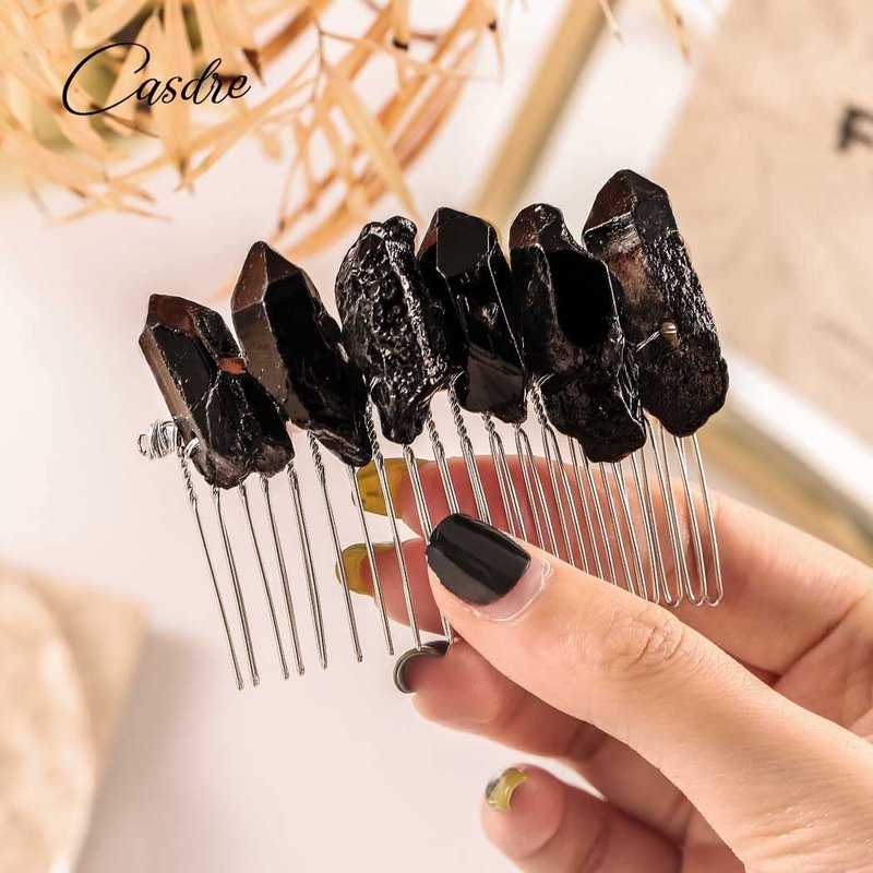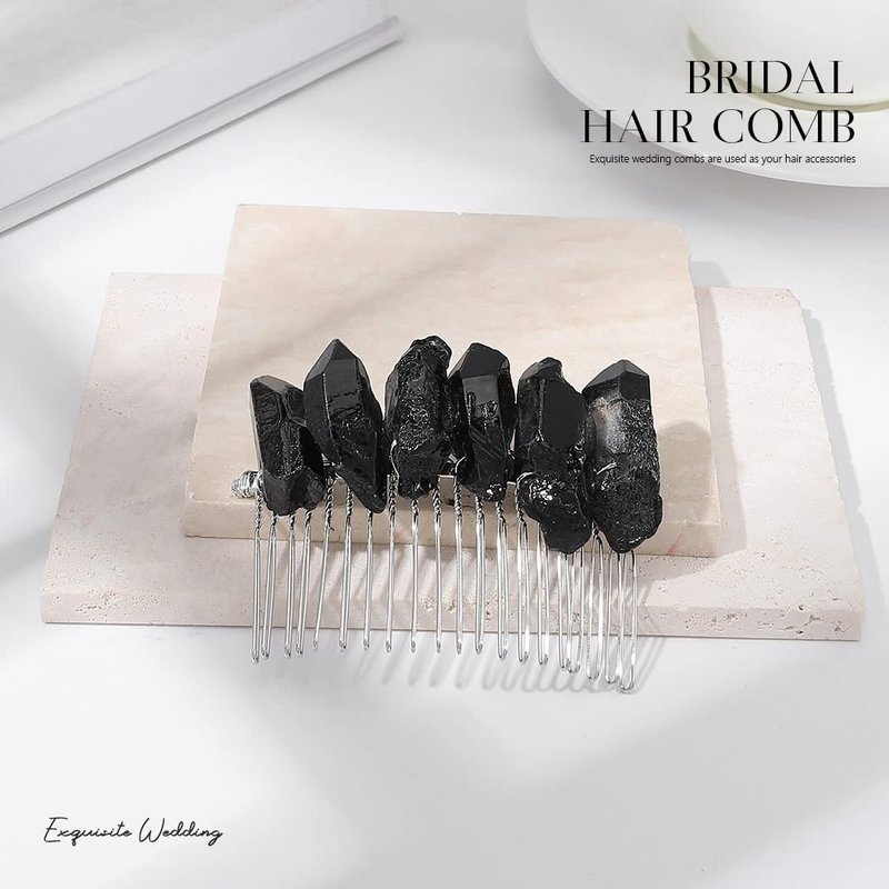 Casdre Crystal Bride Wedding Hair Accessories Quartz Bridal Hair Comb Rhinestone Hair Piece for Women and Girls (E Black)