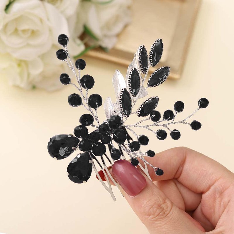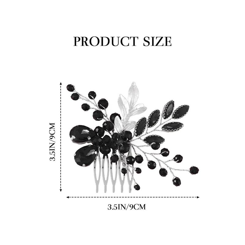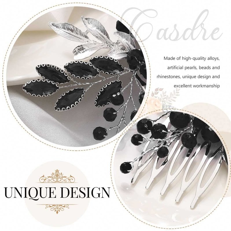 Casdre Crystal Bride Wedding Hair Comb Rhinestone Bridal Side Comb Hair Piece Leaf Hair Accessories for Women and Girls (D Black)
