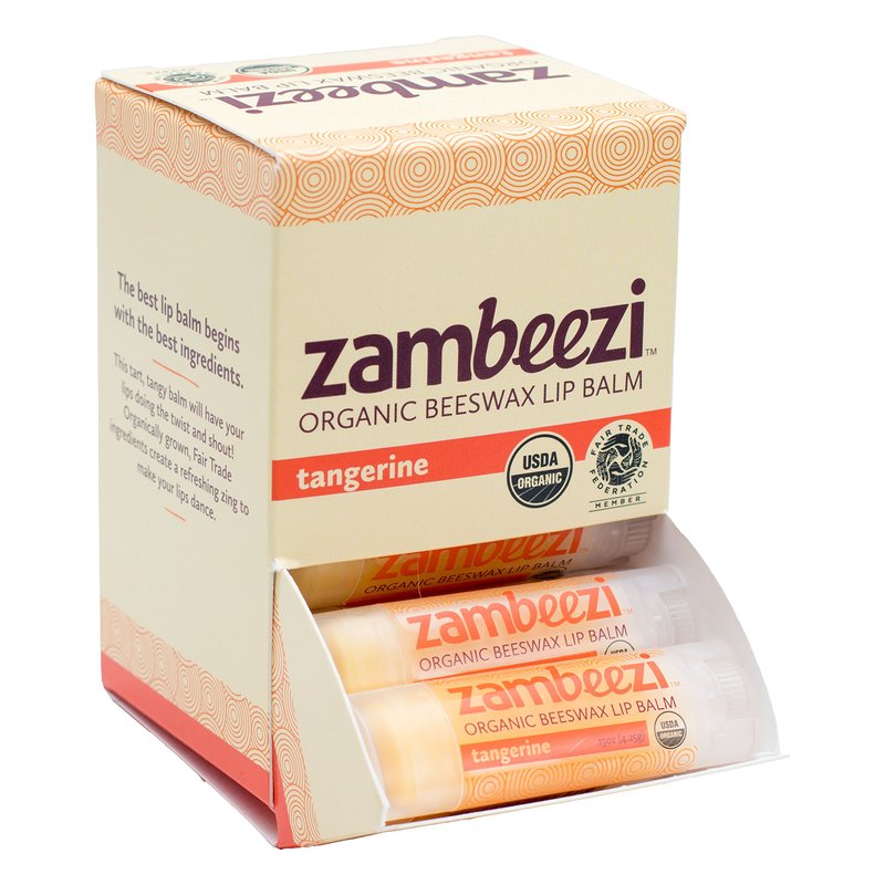 Case of Beeswax Lip Balm by ZAMBEEZI - Tangerine 24-Tube Carton - Crafted with USDA Organic, Fair Trade, Lip Refreshing Ingredients from Zambia, Africa