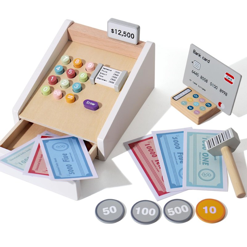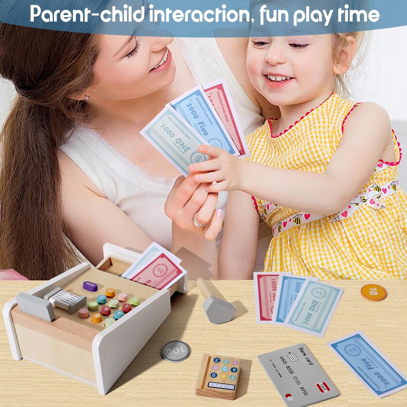 - PRETEND PLAY: Children can use the cash register to simulate real-life shopping experiences, making it a fun and engaging way to learn about money and commerce. They can practice making transactions, counting coins and bills, and solving math problems, all while having fun.