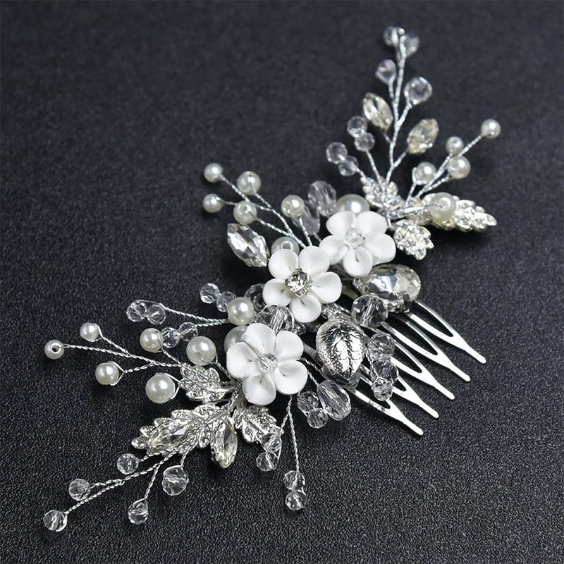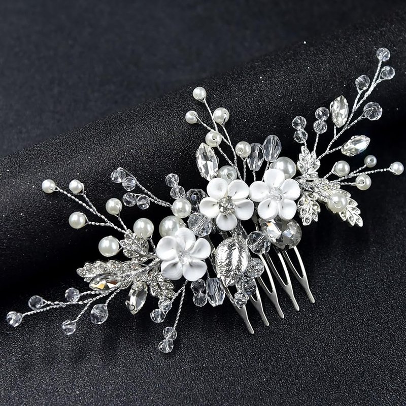 CASOLVX Flower Pearl Hair Comb JEWELRY DETAILS: