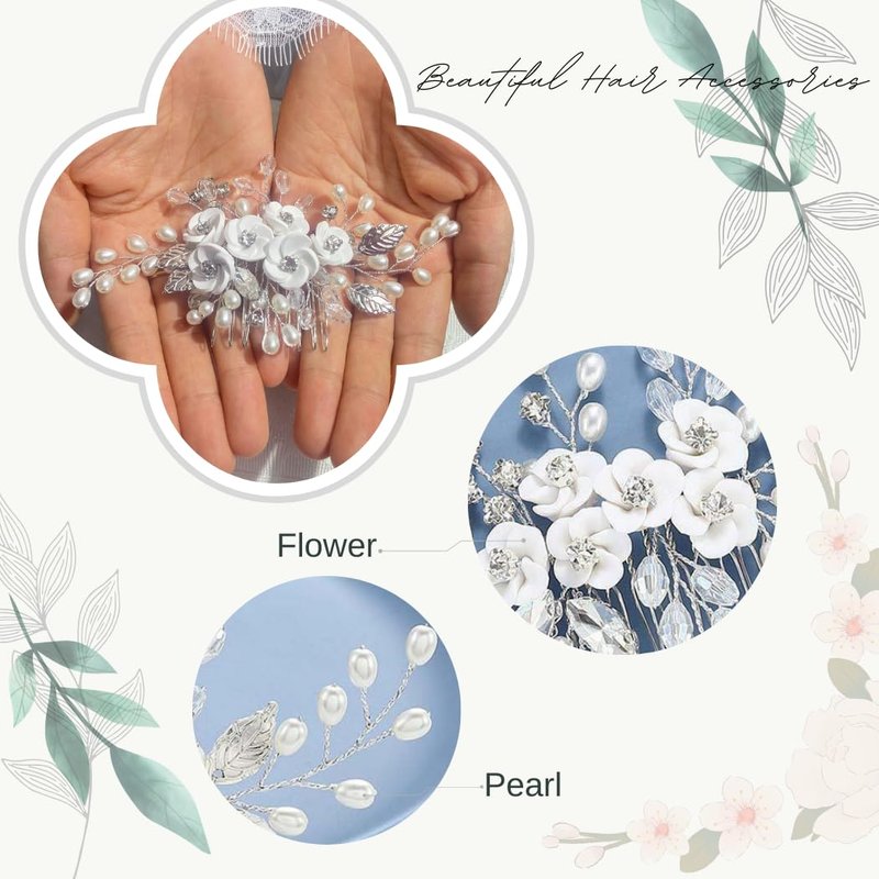 CASOLVX Bride Flower Hair Comb JEWELRY DETAILS: