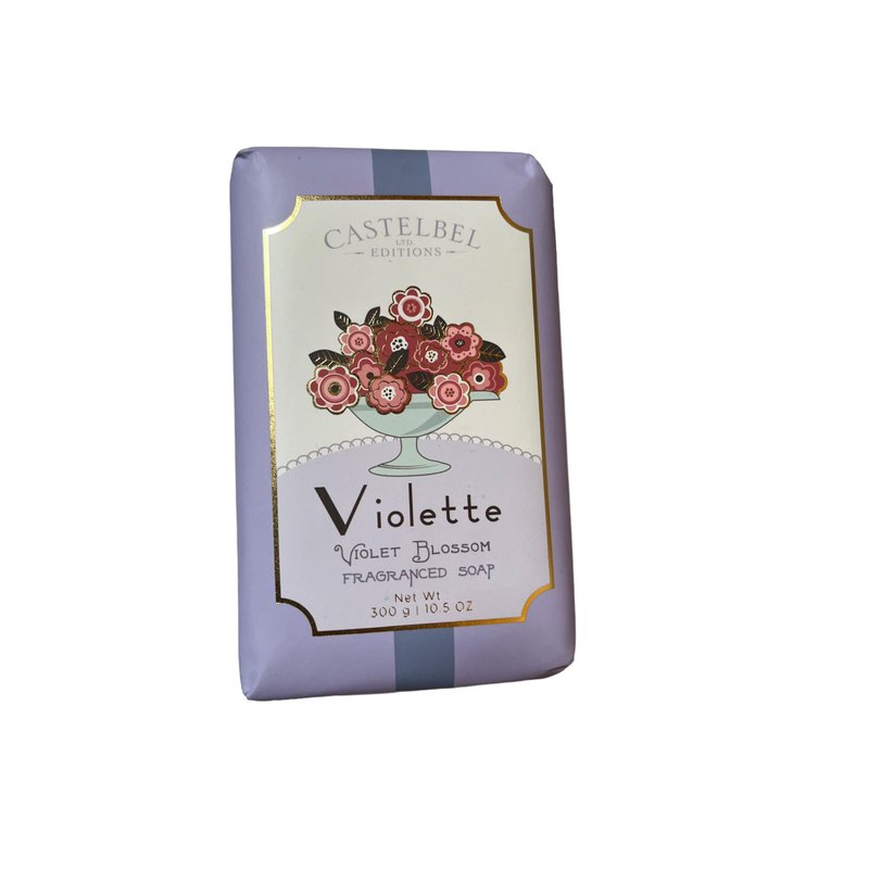 10.5 ounce bar of Violette violet blossom fragranced soap from Castelbel Ltd. Editions