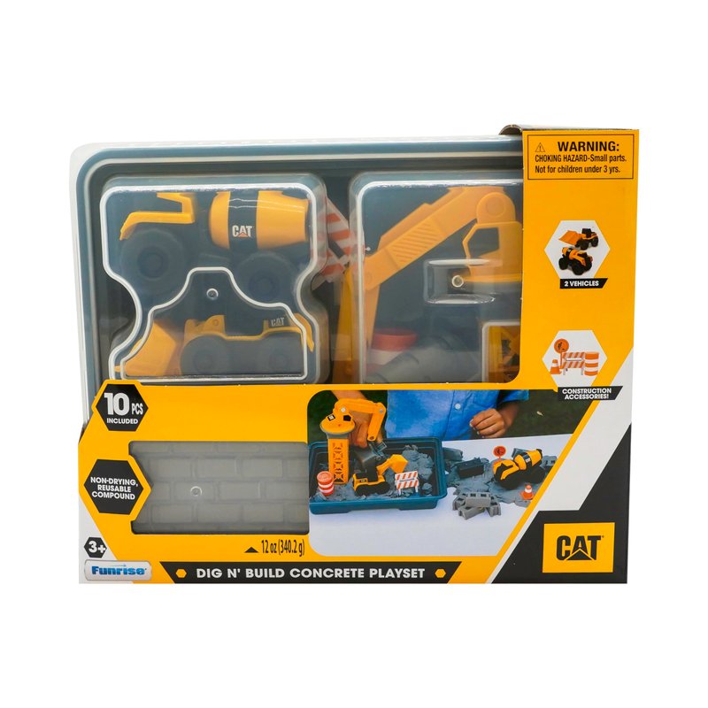 CAT Construction Toys, Dig N' Build Concrete Playset with 12 OZ of Compound - Storage Container