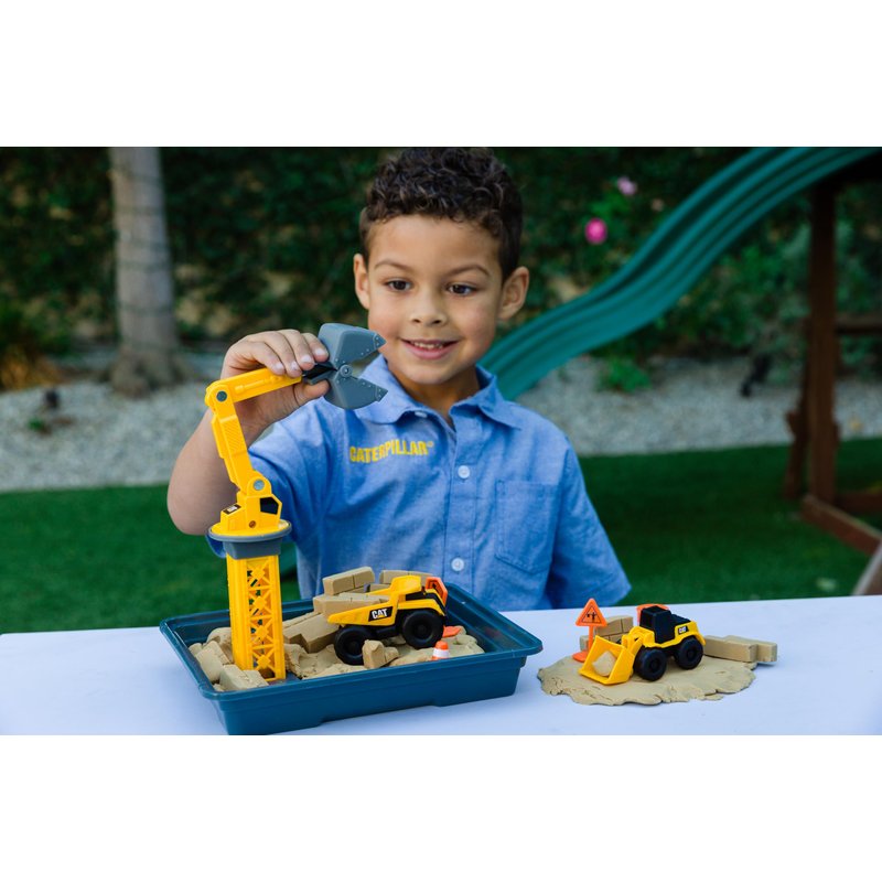 CAT Construction Toys, Dig N' Build Dirt Playset with 12 OZ of Compound - Includes 2 Little Machine Vehicles, Crane, and Storage Container.