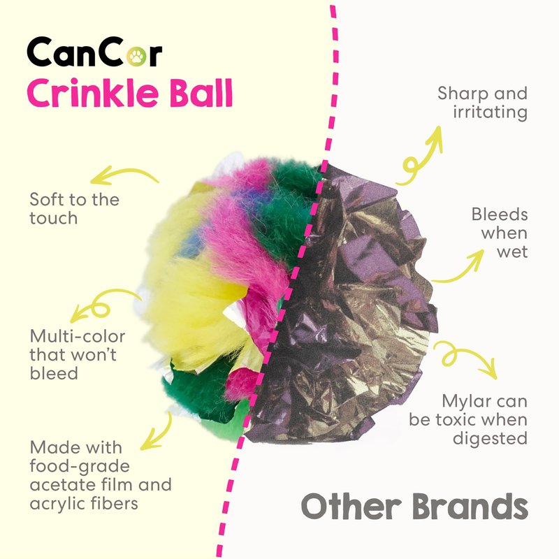 - Perfect for Playtime: CanCor crinkle toys for cats let them fetch and carry. These cat fuzzy balls promote active play and exercise, great for indoor cats