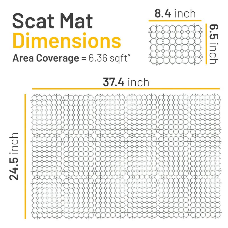 - [Area Coverage] - The cat spikes indoor mat measures 8.4"x6.3" and covers an area of 6.3 sqft. Helps in keeping neighbors dogs out of yard, keep cat off counter or as an anti digging for dogs device.
