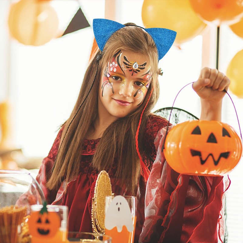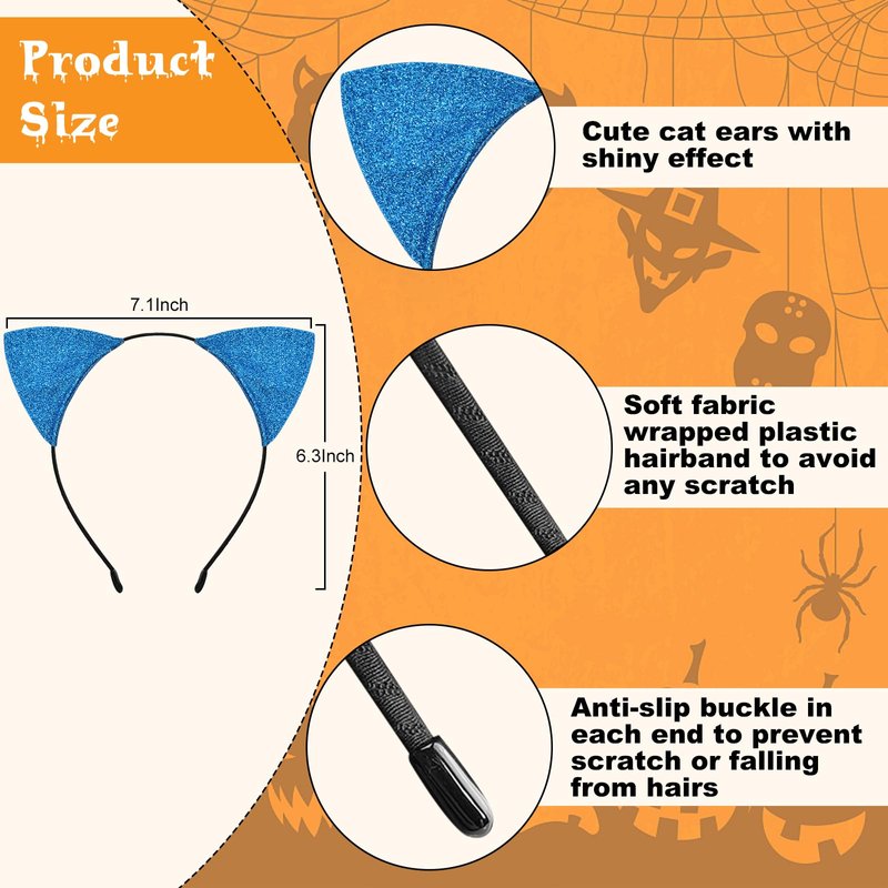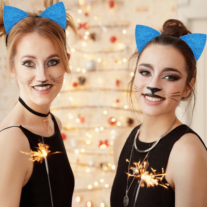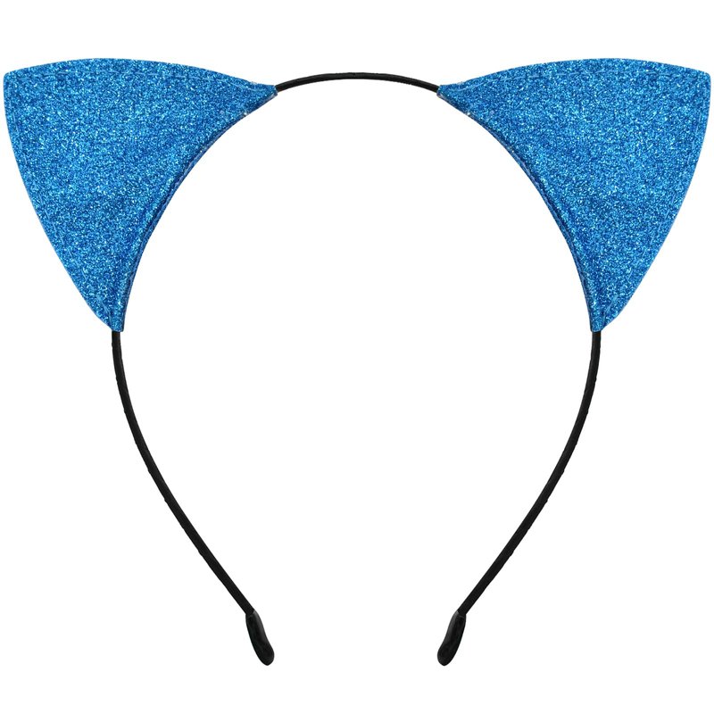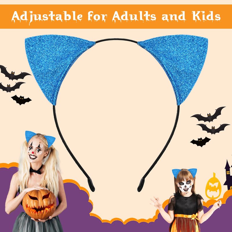 Cat Ears Headband for Women Girls - Cute Sparkle Glitter Hairband Halloween Cosplay Cat Costume Hair Accessories for Adult Kids Birthday Daily Wear Blue